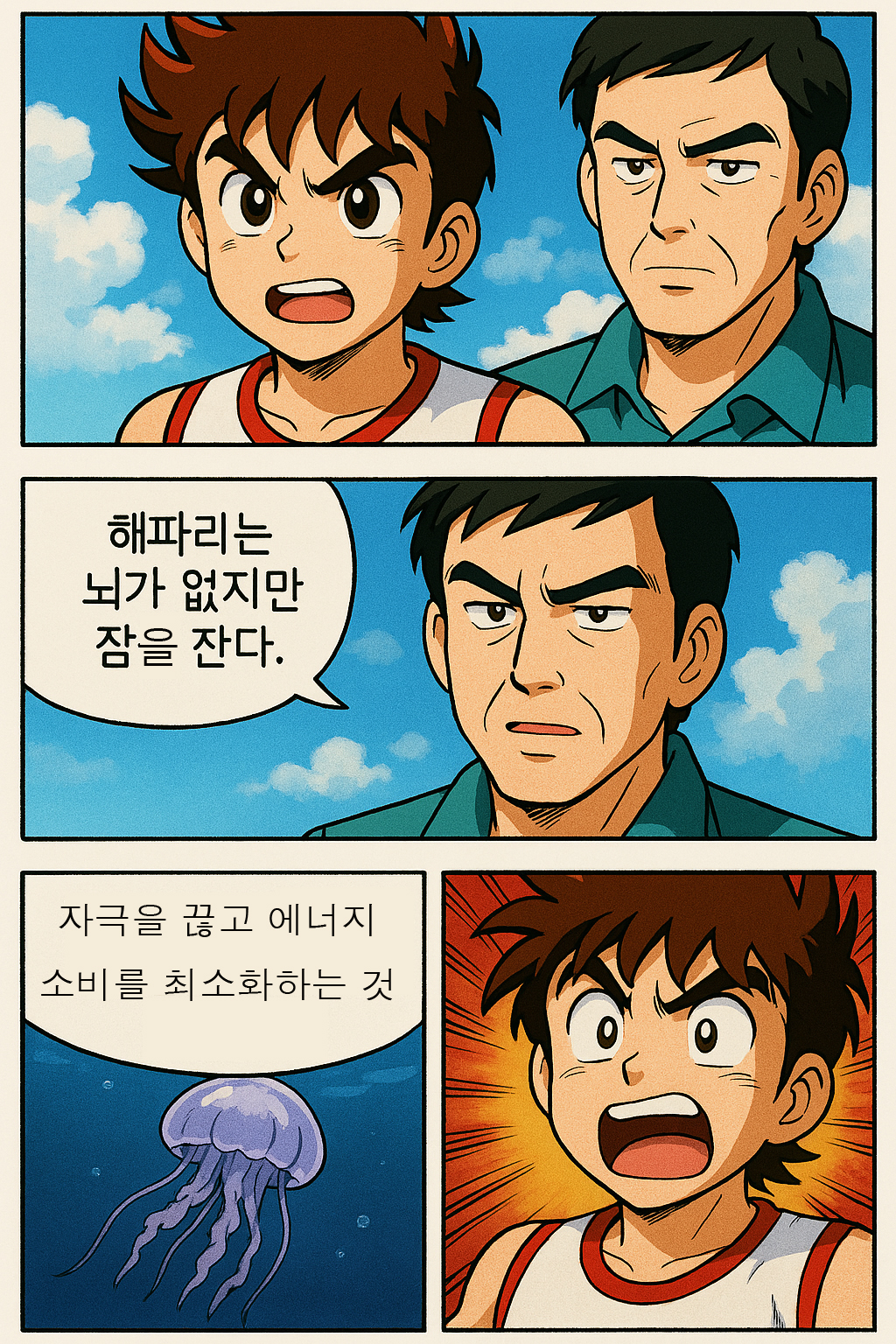 | 해파리 수면법 | 뇌 없이 에너지를 절약하는 본능적 수면 방식 |